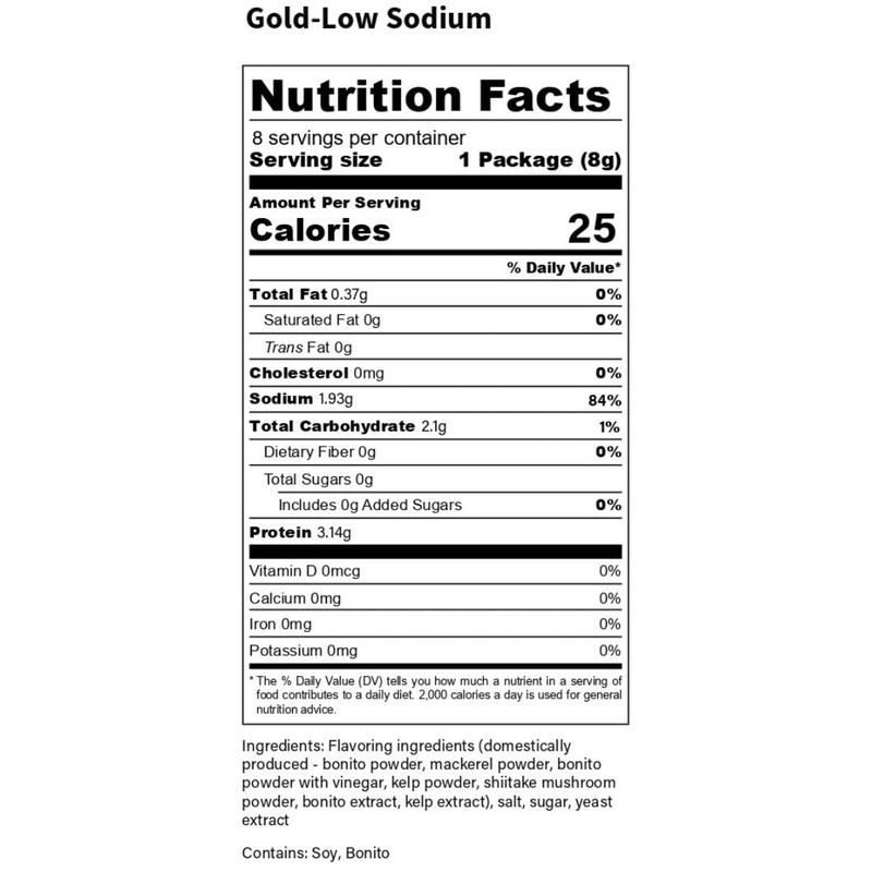 - Contents : 80g (8g x 10bags) Shelf life: 18 months Ingredients: Flavoring ingredients (bonito flakes, mackerel flakes, kelp, shiitake mushrooms, bonito extract, kelp extract), salt, sugar, seasonings (amino acids, etc.), powdered soy sauce, yeast extract (contains some soybeans and wheat as part of the ingredients) Storage instructions: Before opening, please store in a cool, dark place, avoiding high temperatures and humidity. After opening, be sure to seal it tightly and store in the refrigerator. ICHIBAN-DASHI, a versatile and long-selling dashi (soup stock). We are particular about using domestically sourced ingredients and carefully selecting the origins of the main ingredients.
