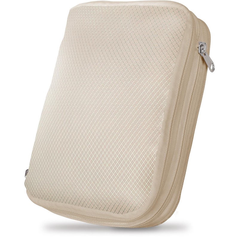 ICHIFUJI Travel Compression Bag, Travel Pouch, Compression Bag, Storage Pouch, Zipper, Business Trip, Travel, Convenient Goods, Compression to Save About 50% of Clothing Space (M, Beige)