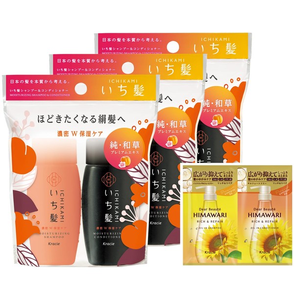 ICHIKAMI 【Dense W Moisturizing Care】 Shampoo Conditioner Mini Bottle Set of 3 Bonus | Travel Set, Portable