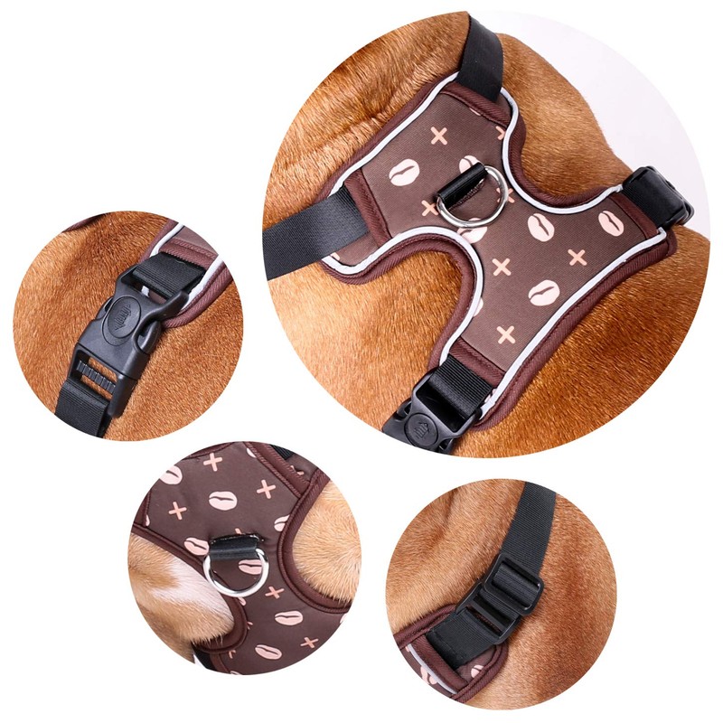 iChoue Dog Vest Harness Leash Set Soft Padded No Pull Adjustable Reflective for Small Medium Dogs - Coffee Bean L