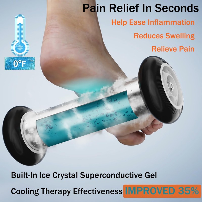 - Instant Cooling for Pain Relief:Icing Foot Massager Roller, re-freezable ice roller provides immediate pain relief, especially for acute plantar fasciitis sufferers. The foot ice pack roller uses cold therapy to effectively reduce swelling, inflammation, and pain.