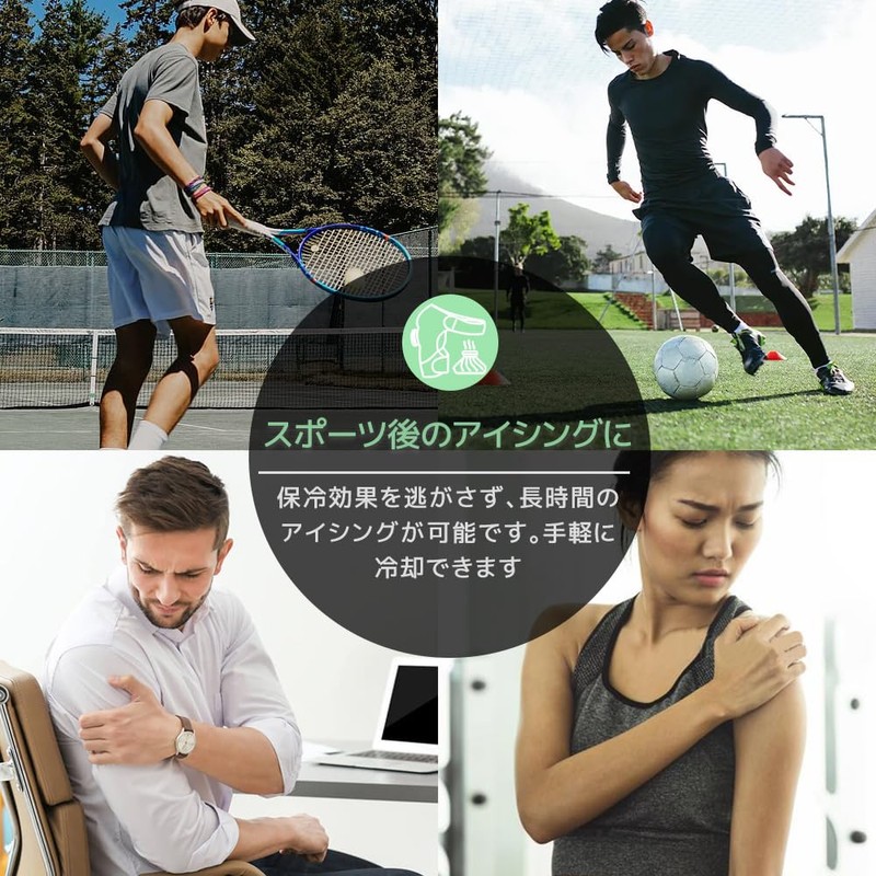 - (Icing Supporter for Shoulders) The special shape makes it easy to fit the shape of your shoulder, so it gently causes pain and swelling caused by stiff shoulders and sports. Velcro design allows you to adjust the length freely. The icing supporter belt has excellent elasticity, so you can secure the ice bag to the shoulder or other large affected areas. (2022 Model, with Auxiliary Belt) Comes with an auxiliary belt for an extension so it can be used even if you have a large figure. The length can be adjusted, so please choose the size according to your size