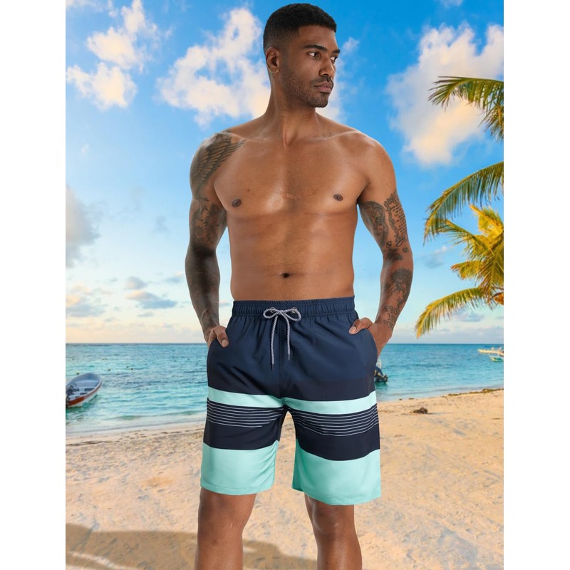 iCKER Men's Shorts, Swimming Trunks, Beach Shorts, Board Shorts, Quick-Drying for Summer, Green Stk363