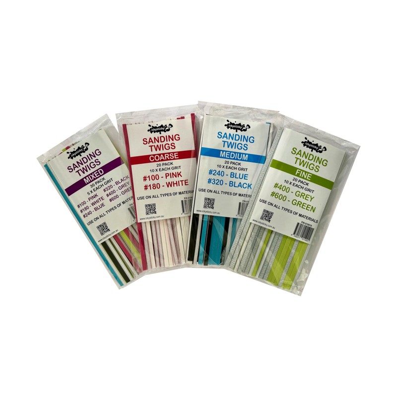 ICKYSTICKY FINE Grits Sanding Twigs or Sticks Ideal for Woodworking Hobby Arts Crafts Models Mixed Grits and Lengths Cushioned Abrasive 20pack