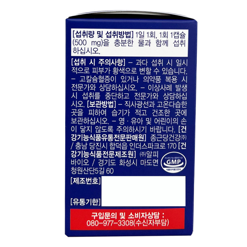 - 섭취량, 섭취방법 및 섭취 시 주의사항 및 부작용 가능성: 상품 상세설명 참조