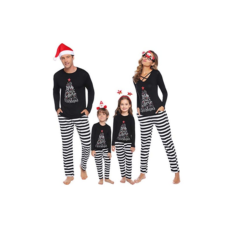iClosam Matching Family Pajamas Set Striped Christmas Pajamas Sleepwear Dad Mom PJs Black