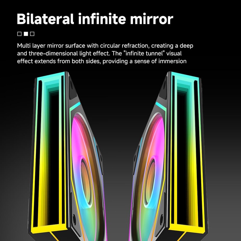 • Dual Infinite Mirror Design: Features a large side infinite mirror and axis-clear infinite mirror, creating a mesmerizing 3D "tunnel" effect for immersive RGB lighting