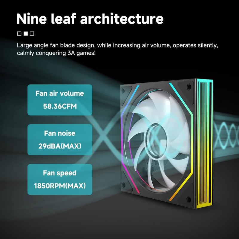 • Whisper-Quiet Performance: Advanced 9-leaf frosted blade design delivers 58.36CFM airflow while operating at only 29dBA—perfect for gaming marathons and noise-sensitive environments