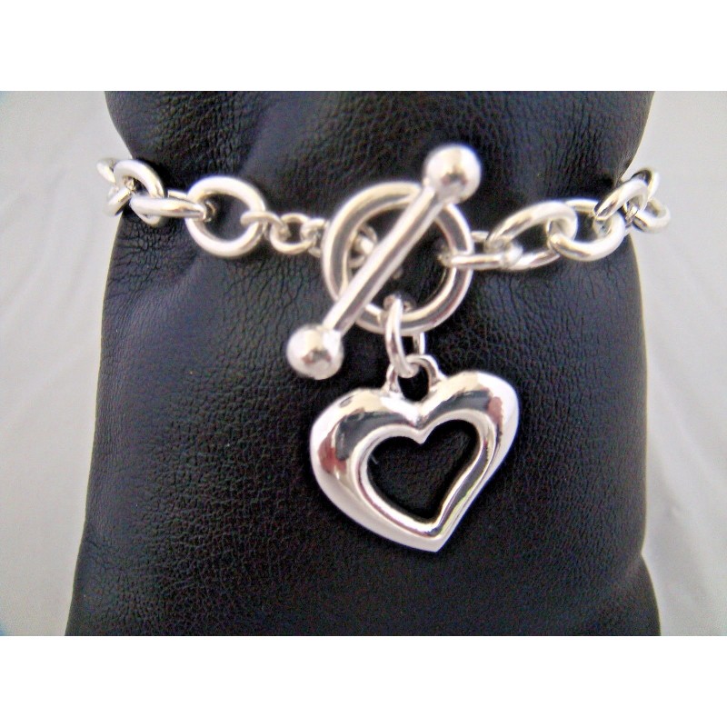 Icon Collection Heart Bracelet Silver Link Chain Toggle Closure 7 Inches Open Heart