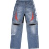 Icon 2821-1701 Hooligan Jeans 38 Blue Durable Cordura Denim chassis with double layer knee panels makes this jean tough enough for the streets Comfortable fit for casual riding Air Mesh panels above the knee for increased airflow Wide-leg fit plus flex panels in the knees and inseam to ensure easy movement and maximum comfort