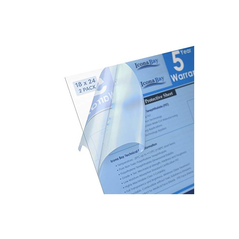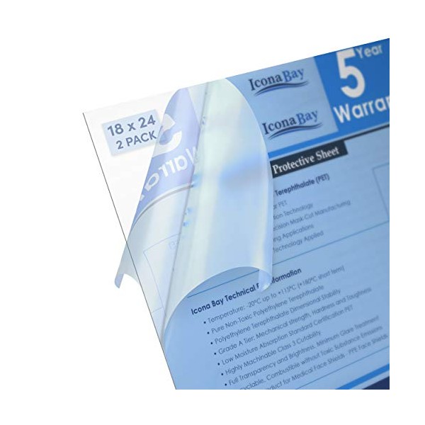 Icona Bay PET Plexiglass, Thin & Flexible Plastic Sheets (18x24 x 0.03 inch, Clear, 2 Pack), PET Sheeting is Pliable Unlike Acrylic, Easy to Cut for DIY Art Projects & Protective Barriers