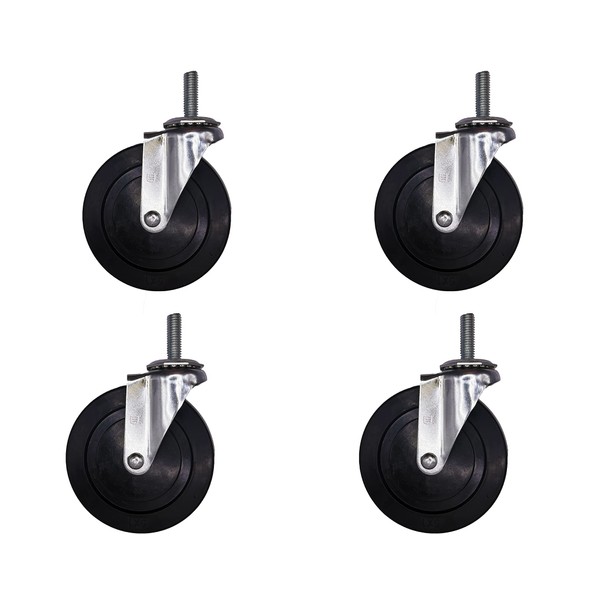 IconCasterWheels 5” Light Duty Threaded Steam Caster | Soft Rubber Wheel | Threaded Stem 1/2-13" x 1-1/2" | Load Capacity 150 LBS Per Caster | Set of 4