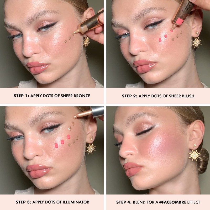 - Cheeks and Lips: The ICONIC Sheer Blush gel is hashtag perf for application on cheeks and lips, giving you that all-over colour