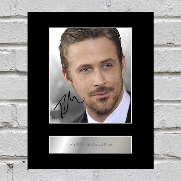 Professionally mounted display of Ryan Gosling with his printed autograph.Our bevel cut acid free mounts are 1.5mm in thickness and can be fitted into a 10x8 inch frame. We use the latest state of the art photo processing lab equipment for the highest quality prints. Perfect gift for any Ryan Gosling fan. Great piece of memorabilia at an affordable price.