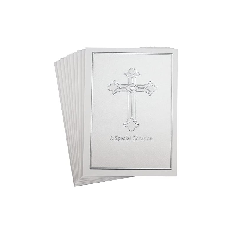 - Each card is embossed with a beautiful silver cross, a silver border, and the words "A Special Occasion".