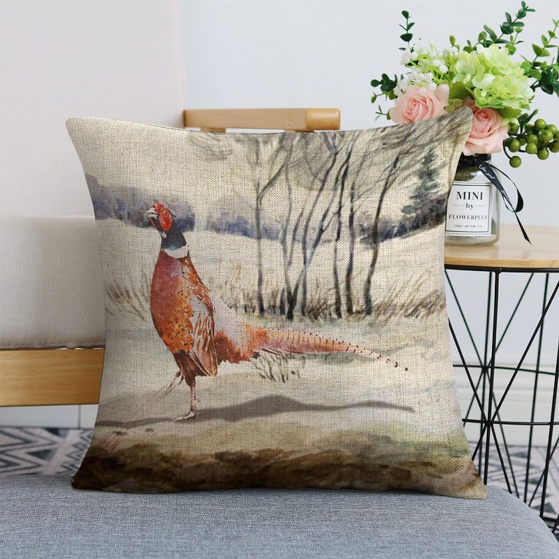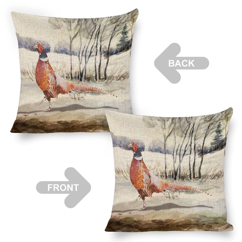 Icotoibabie 18 x 18 Pillow Covers Pheasant Pheasant Walking in The Forest Linen Square Invisible Zipper Minimalism Boho Farmhouse Cushion Cover for Sofa Car Couch Office Chair