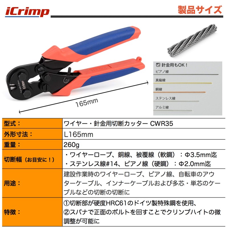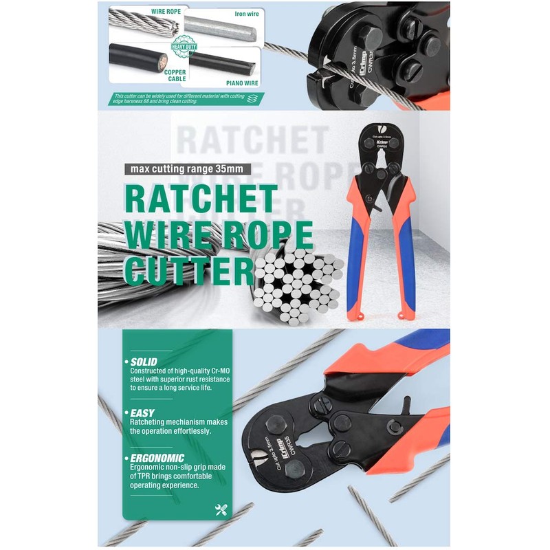 iCrimp CWR35 Ratchet Wire Cutter Wire Rope Cutter Wire Cutting Cutter Outer D...