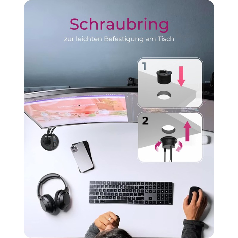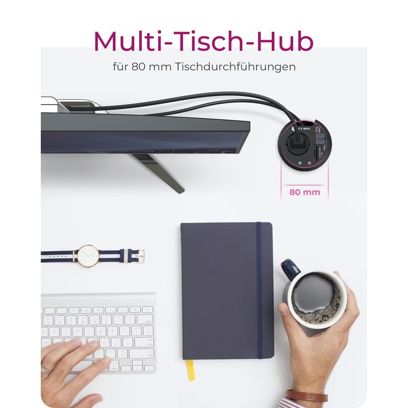 ICY BOX Desktop Hub with SD/microSD Card Reader, 2X Type-A, USB-C, 2X 3.5mm Audio, IB-HUB1430-CR, 80mm