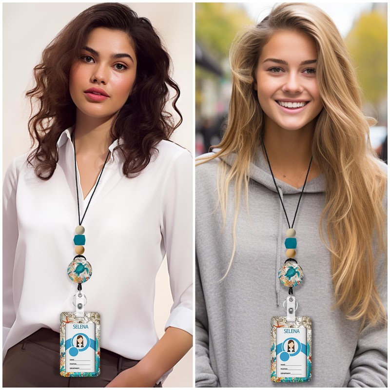 - Versatile and Stylish: Our teacher lanyards combine functionality and fashion with a silicone beaded design and retractable badge reel. Great for teachers and professional women, they securely hold ID badges and keys while adding a stylish touch. The unique deep blue sea turtle and nautical map design creates an eye-catching accessory, adding personality to any outfit