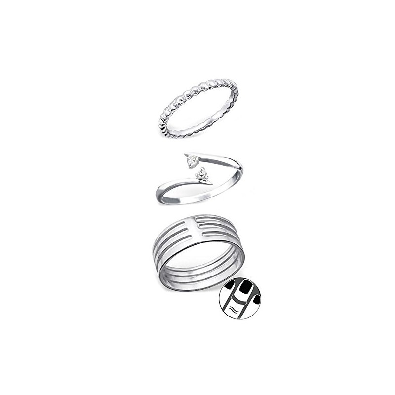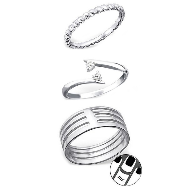 ICYROSE 925 Sterling Silver Set of 3 Textured, Double Crystal, Four Connected Above Knuckle Ring Mid Finger Top