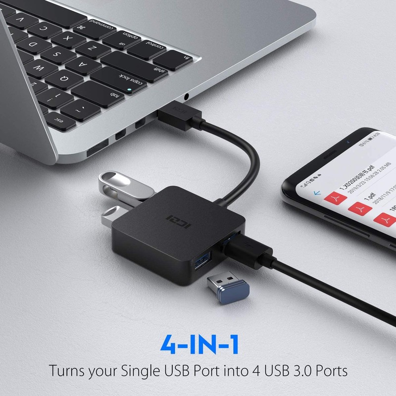 ICZI USB Hub, USB Splitter USB Hub 3.0 4 Port with Extended for MacBook Pro, iMac, Surface Pro, Mac Mini