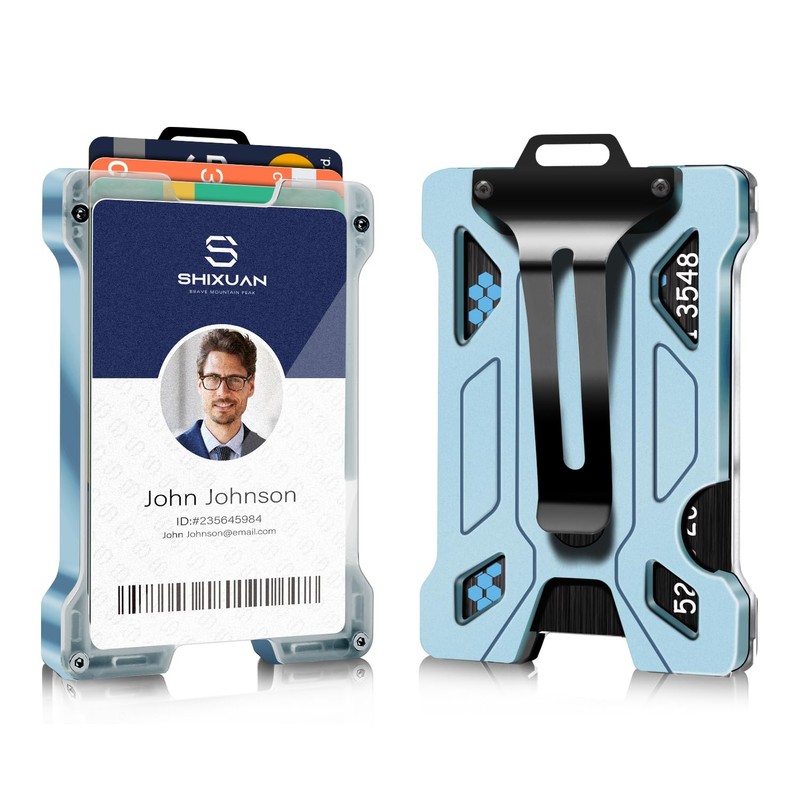 ID Badge Holder with Retractable Clip, Credit Card Holder, Keychain Wallet, Name Badge Holders, Business Card Holder, and Money Clip for Men and Women (Blue)