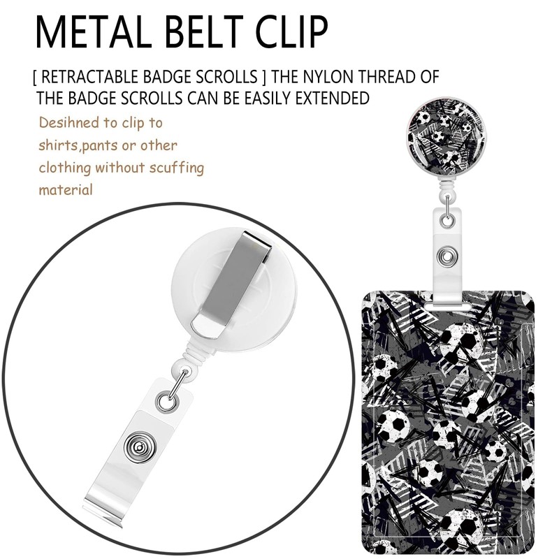 ID Badge Holder with Retractable Lanyard & Badge Reel, 360° Rotating Clip for Nurses, Doctors, Teachers - Hospital, School, Office (Camouflage Soccer Pattern)