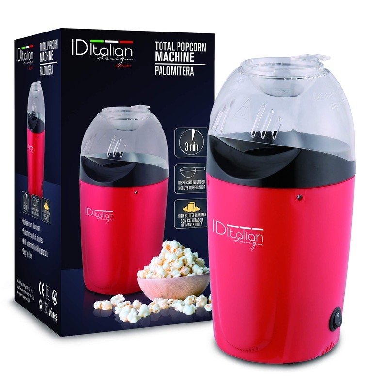 ID Italian Design - Popcorn Maker - Popcorn Ready in 3 Minutes with Butter Heating Surface - 1200 W