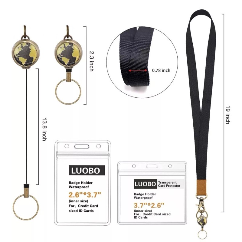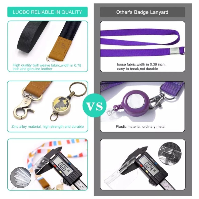 - 【Comfortable and Durable】LUOBO lanyards are made of high-density polyester material and genuine leather,color bright,soft and comfortable,washable,no fading,no breaking,durable and wear-resistant.Zinc alloy lobster clasp,key ring and retractable reel,metal material,plating process,non-fading,no deformation;Two thicken PVC Badge Holder,waterproof and dustproof,light and durable.LUOBO lanyard aims at every detail,to solve your loss problem once and for all.