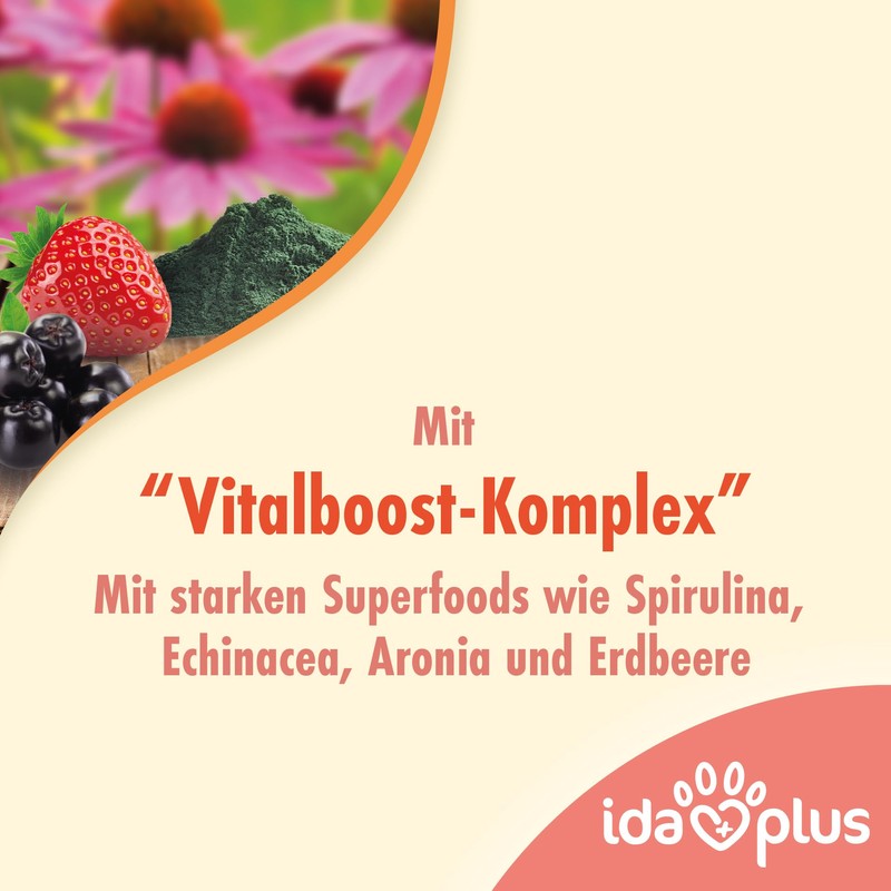 IdaPlus vitamin power mini sticks vital food for building and maintaining a resilient immune system and an accelerated immune response. With coordinated multivitamin complex for optimal support for your velvet paw. With particularly high-quality thanks to carefully selected raw materials and gentle production, these snacks are a particularly valuable reward.