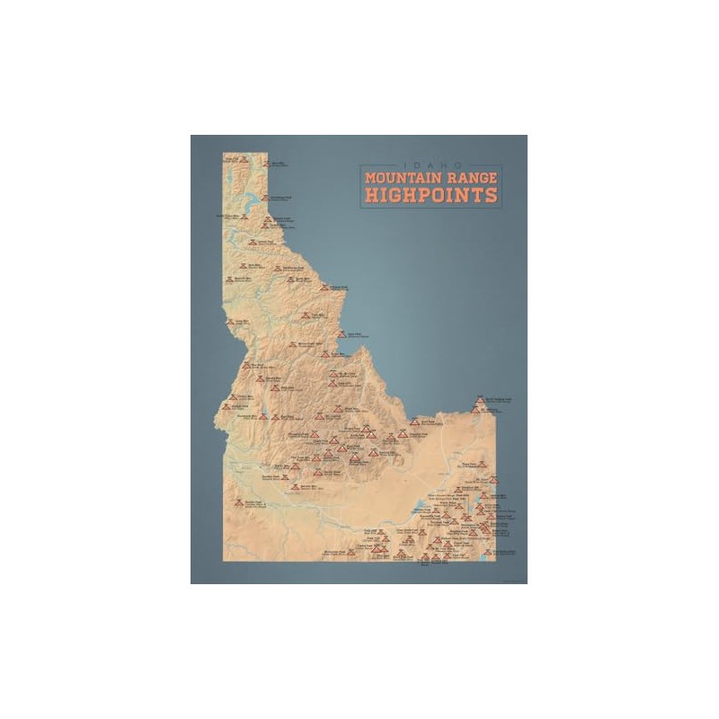 Idaho Mountain Range Highpoints Map 18x24 Poster (Camel & Slate Blue)