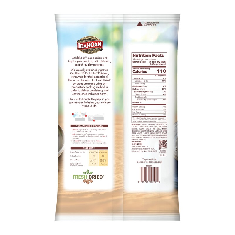 Idahoan® CREAMY Butter & Herb Mashed Potatoes, 8/32 oz. pchs, 32 Oz (Pack of 8)