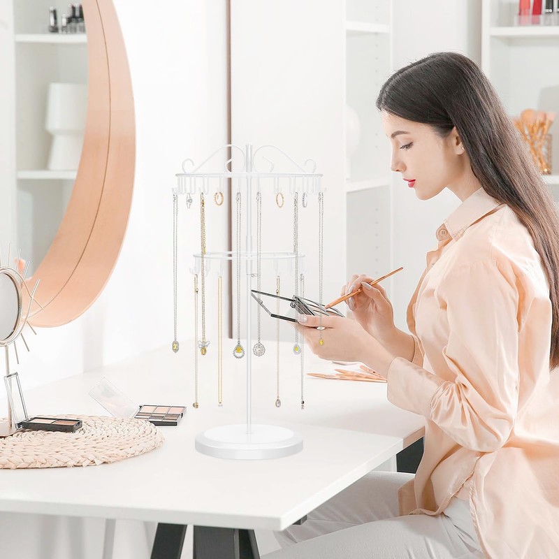 - Rotating jewellery stand: each level of the bracelet holder can be rotated individually, so you can quickly find the jewellery you need. The top carousel of the necklace jewellery tree is larger than the second level and offers plenty of space for necklaces that do not get tangled when you turn the carousel.