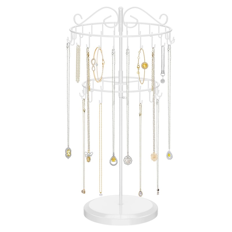 iDavosic.ly 2-Tier Chain Stand Jewellery Rotatable 42-Hook Chain Necklace Storage Metal Chain Holder for Bracelets Ring Bracelet Sunglasses White