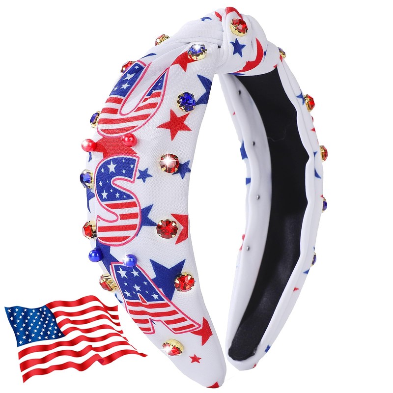 IDDFEVE 4th of July Headband for Women - Patriotic USA Pearl Rhinestone Knott...