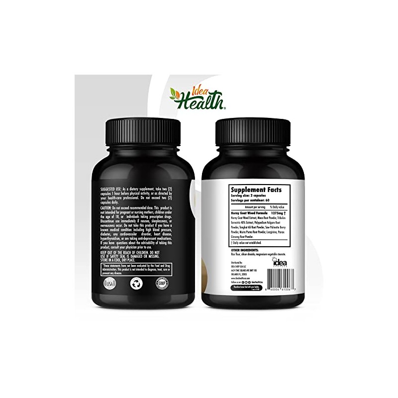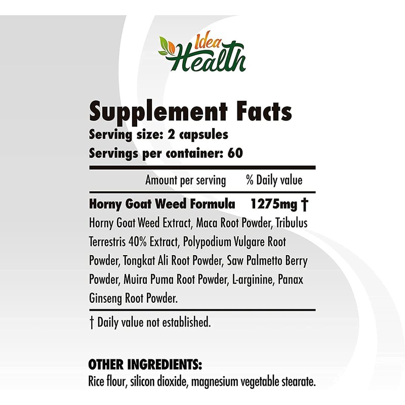 Idea Health Horny Goat Weed 1275 mg MAX STRENGTH w/Maca (2 Month Supply) - Energy & Performance Complex for Men and Women | 120 Vegan Capsules