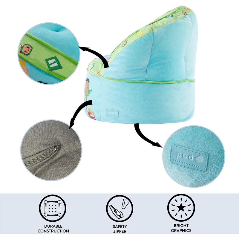 - DESIGN: This bean bag chair is designed after kids favorite Cocomelon, decorated with Cocomelon graphics, this iconic chair will be a favorite for all Cocomelon fans. Bean bag chair features iconic characters JJ,Cody,and Nina. Bean bag chair has added detail and cozy embellishments for comfortable seating.