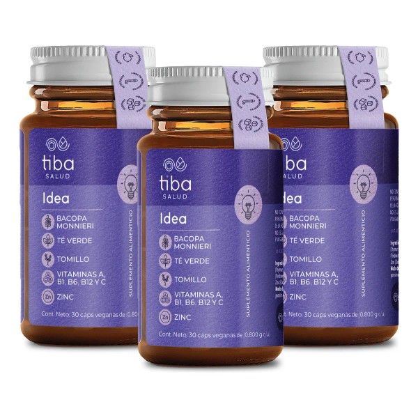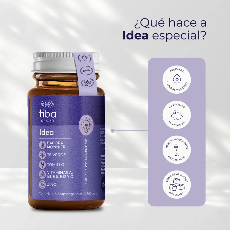 Idea Tiba X3 – Suplemento en Cápsulas para Concentración, Memoria y Enfoque Mental | Fórmula Natural con Extractos Nootrópicos | Estimula la Función Cognitiva y Ayuda a Combatir la Fatiga Mental | Producto Hecho en México | Sin Azúcar, Sin Gluten
