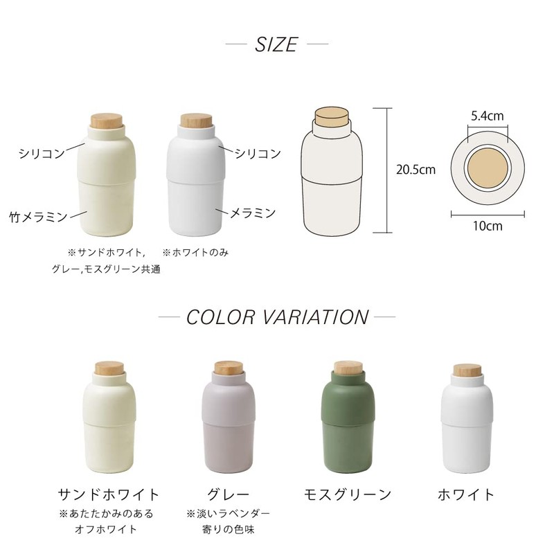 - Materials: Silicone, bamboo melamine (body), rubber wood (mildew resistant PU coating/lid). *Surface matte finish