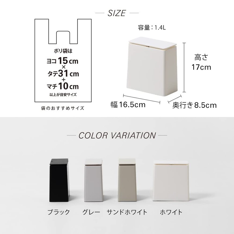 - Fits trash bags measuring at least (H x W x D) 12.2 x 5.9 x 3.9 inches (31 x 15 x 10 cm).
