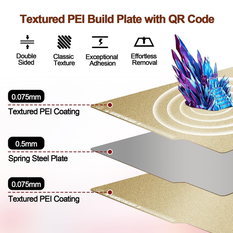 - 【Thicken PEI Coating】PEI spring steel sheet features a thick, power-sprayed coating, creating a rough, textured surface that adds a unique finish to model bases.