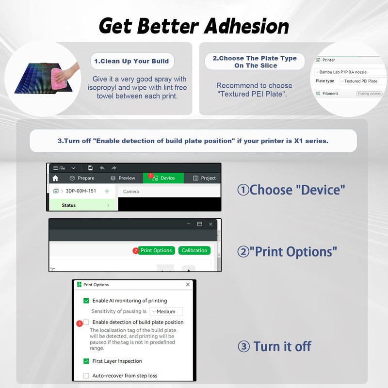 - High Z-axis precision printing: The textured PEI plate can improve Z-axis precision during the printing process, ensuring higher accuracy and consistency in the vertical dimension.