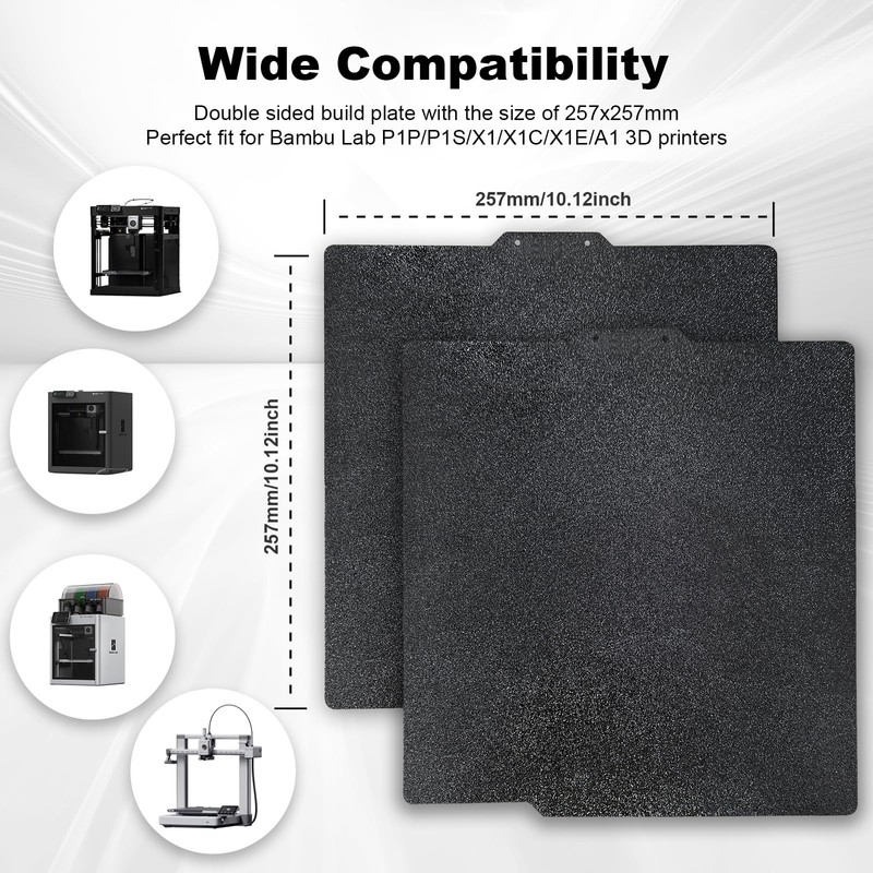 - Delivery contents: 1 x black PEI pressure plate (257 x 257 mm, perfect fit for Bambu Lab X1, X1C, X1E, P1P, P1S, A1).