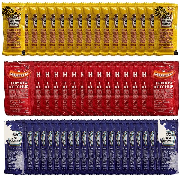 - Variety Pack – Includes an assortment of ketchup, mustard, and mayonnaise packets to suit different tastes