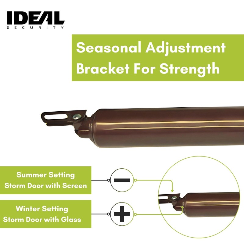 Ideal Security Model 8730 Heavy Duty Pneumatic Screen and Storm Door Closer with Wind Chain, 10.5" L x 1.5" W x 1.5" H, Brown