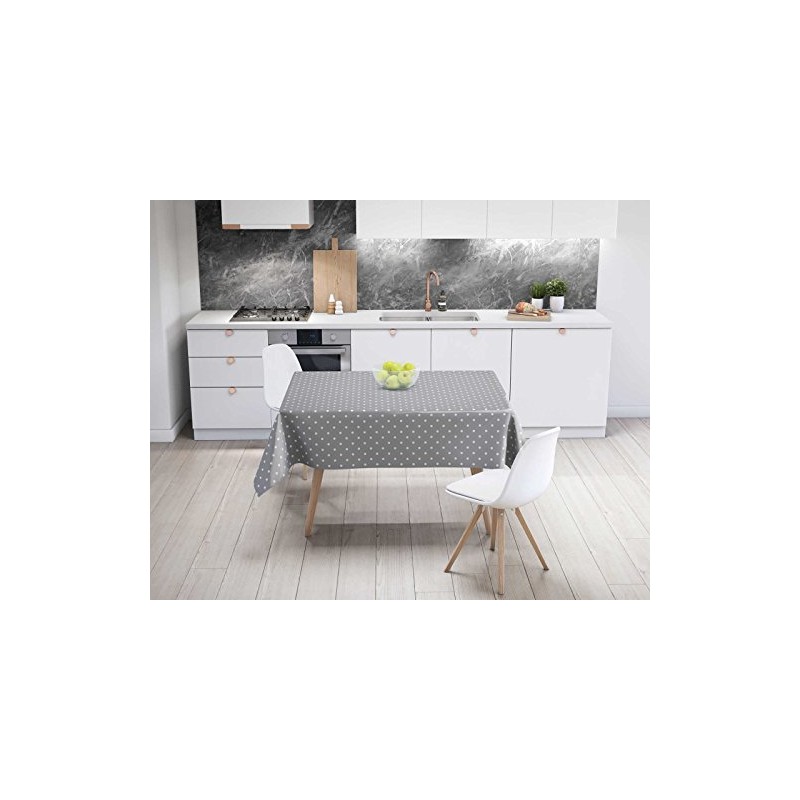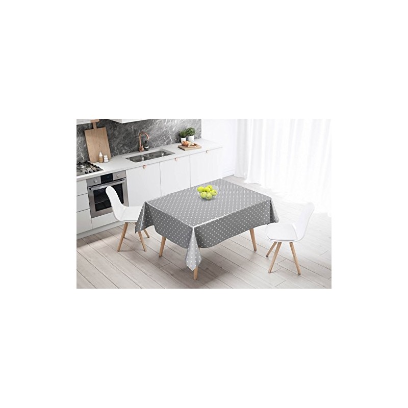 Ideal Textiles Polka Dot Silver PVC Tablecloth, Easy Clean Table Cloth, Wipe Clean Vinyl Table Linen, Kitchen Dinner Party Tableware, Spotted Design Table Cover, Silver Grey & White, 137cm x 200cm