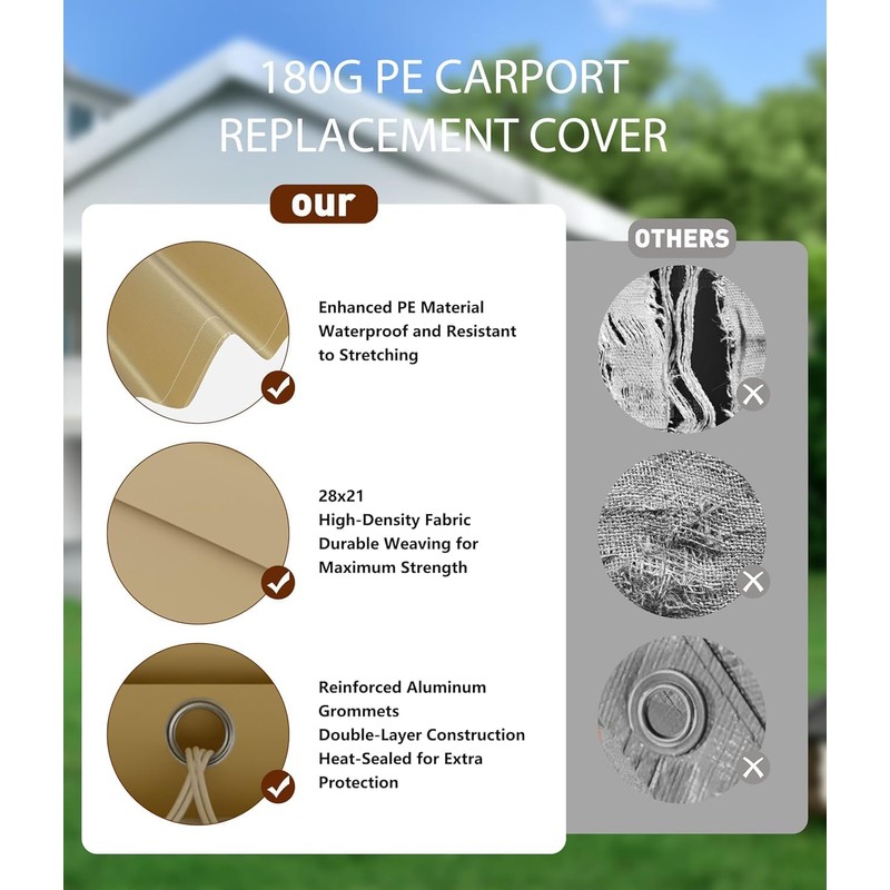 IDEALHOUSE 13'x20' Carport Replacement Canopy Cover - Heavy Duty 220G PE Fabric, Waterproof UV-Resistant & Wind-Resistant (Yellow, Cover Only - Frame Not Included)