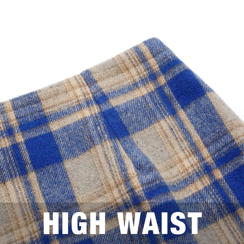 IDEALSANXUN Falda a cuadros de cintura alta para mujer, Azul, L