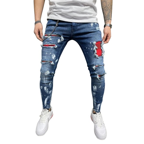 - Pantalones vaqueros de motorista para hombre, elásticos, destruidos, ajustados, pantalones de mezclilla para jóvenes/adolescentes