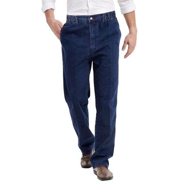 IDEALSANXUN Jeans de cintura elástica para hombre, estilo casual, ajuste relajado, cintura elástica, Azul oscuro, 40W x 32L